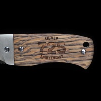 The hand-ground blade is engraved to commemorate the 25th silver anniversary of the Emerson CQC-7